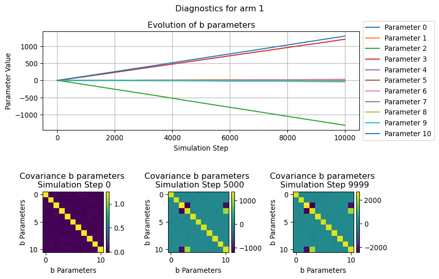 In this section we will visualize how the parameters used by the LinUCB algorithms evolve over the simulation time, in particular we will focus on the b parameters.